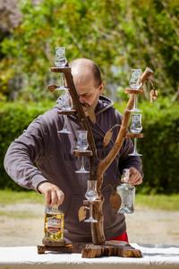 Gróf Gyuri bácsi, aki 1950-től 1987-ig itt dolgozott osztotta meg velünk korabeli tapasztalatait, mesélte el élményeit. Abban az időben elképzelhetetlen volt, hogy a magyar parasztnak ne legyen otthon pálinkája. A legtöbb a szilva volt, de sok volt a körte, barack és a törköly is. Jellemzően a lehullott gyümölcsöt gyűjtötték össze pálinkának, hisz a szép érett egészséges szemekből lekvár, kompót, aszalvány készült télire, nem volt még ismert a globalizáció, nem ettek friss érett szilvát februárban. Mivel a gondos gazda arra is ügyelt, hogy ne legyen sok a lehullott gyümölcs, általában vegyes pálinkát készítettek, hisz így jött össze az a mennyiségű cefre, amelyből készült pálinka kitartott egy évig. Minden reggel meg "kellett" inni azt a kis kupicát, melyet legtöbbször az asszonyok mértek ki uruknak. Eztán következett a jószág, majd egy újabb kupica és a reggeli, ezzel azonban be is fejeződött a pálinkázás. A pálinka a mindennapok része volt, de használták külsőleg- belsőleg orvosságként is. Átlagosan 52 °alc volt az erősség, amelyen a falusi ember kérte a pálinkát és ez az öregek körében így van a mai napig.